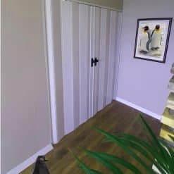 Beyaz Renkli Pvc Akordiyon Kapı, Çift Kanat, Camsız